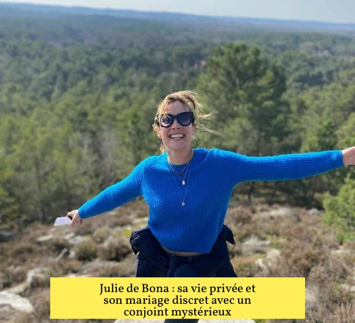 Julie de Bona est mariée, mais l’identité de son conjoint reste inconnue du public. La comédienne choisit de protéger sa vie privée contre les regards indiscrets.