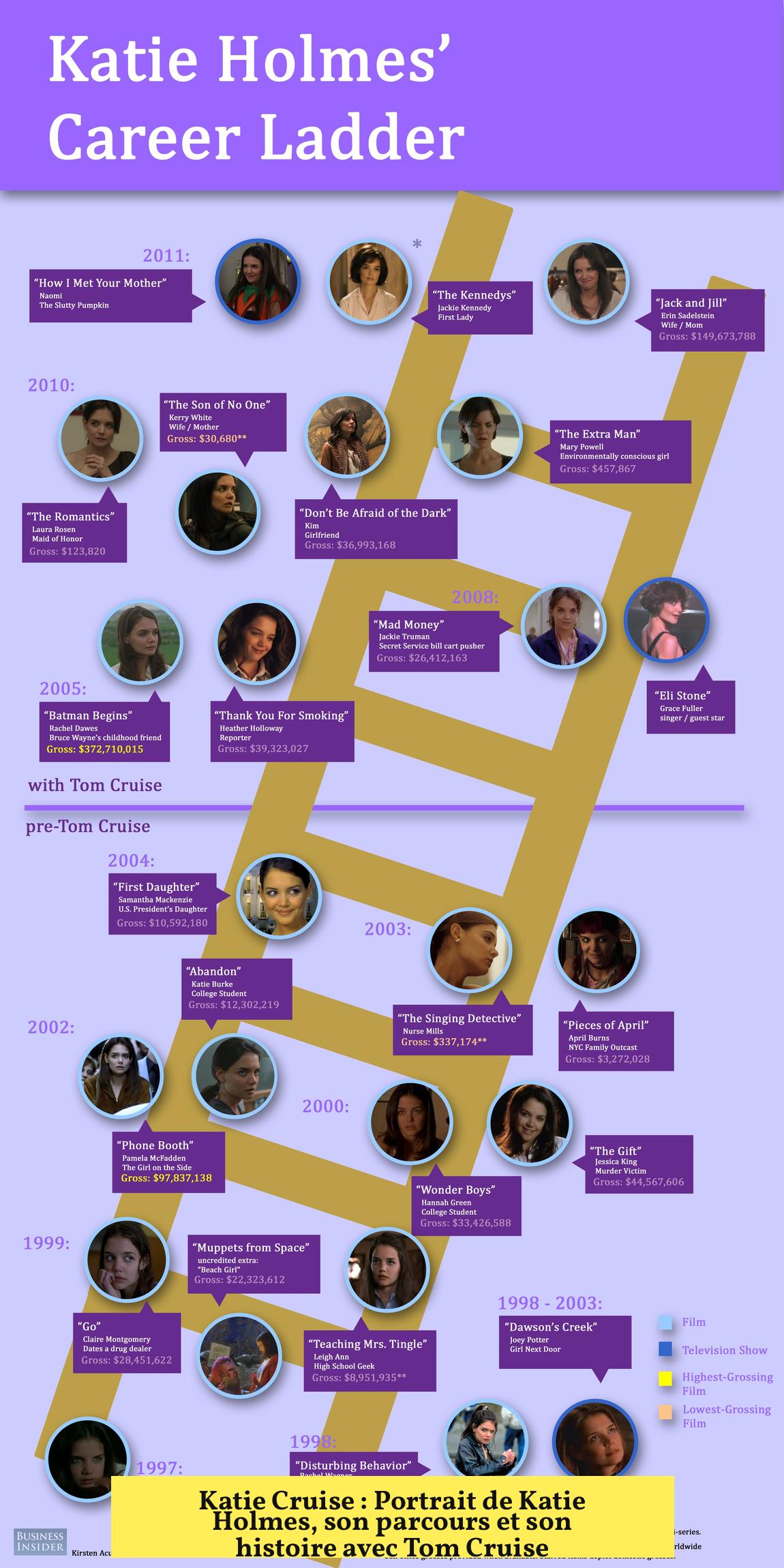 - Katie Holmes a construit une carrière variée en télévision, cinéma, théâtre, et désormais en réalisation et écriture.