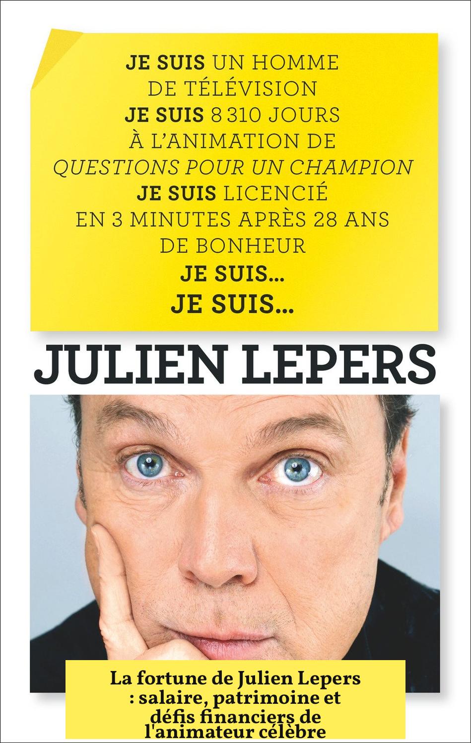 Julien Lepers perçoit un revenu net mensuel estimé entre 6 000 et 8 000 euros durant ses années à Questions pour un champion. Cet animateur emblématique déclare que ses revenus bruts se situaient autour de 15 000 euros par mois, avant imposition. Il explique que la fiscalité lourde réduit de moitié ces gains nets.