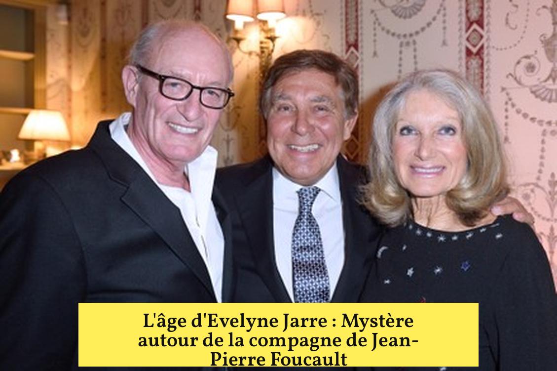 L’âge exact d’Evelyne Jarre n’est pas mentionné directement. Cependant, elle est probablement dans la fin de sa soixantaine ou début de sa septantaine, estimé d’après l’année de sa rencontre avec Jean-Pierre Foucault.