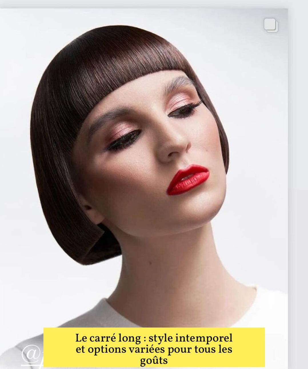 Le carré long, ou long bob, se situe près des épaules. Il combine volume et mouvement. Il peut être porté lisse, ondulé, dégradé ou effilé.