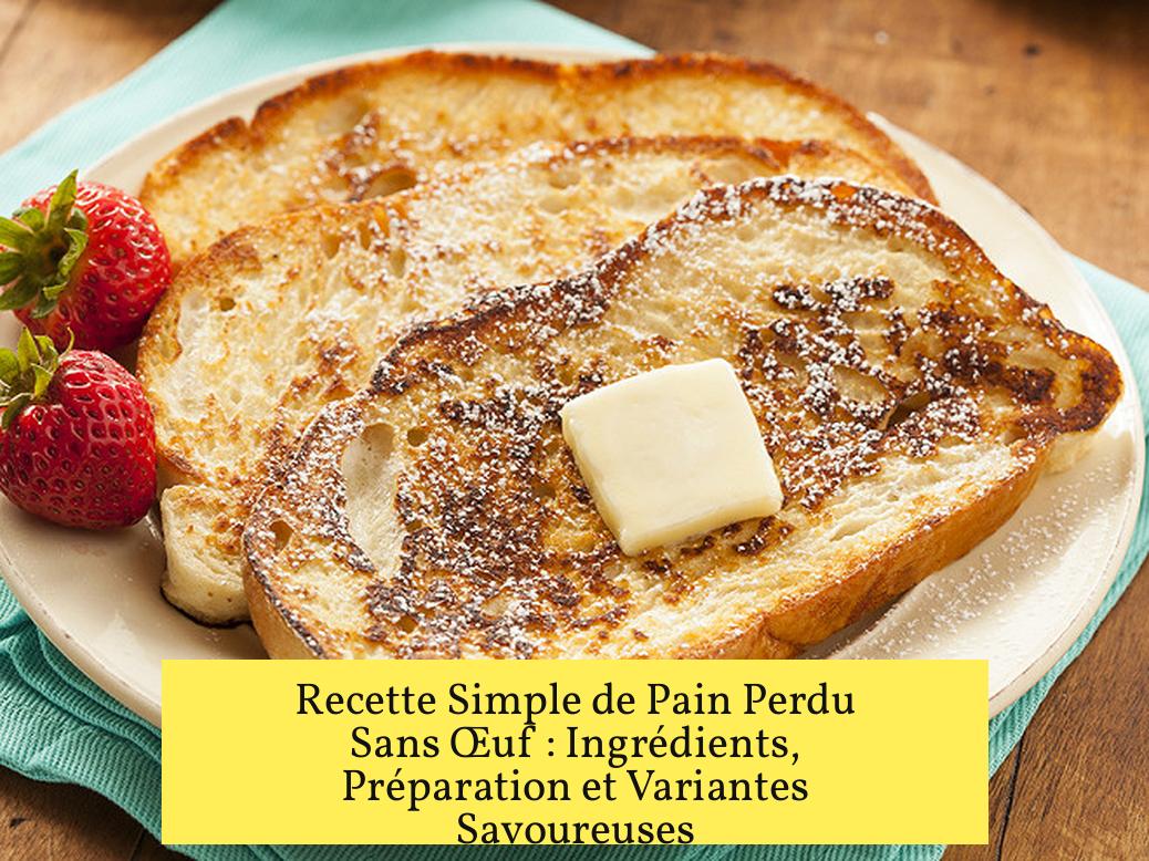 Pain Perdu Sans Œuf : Recette et Astuces Simples Le pain perdu sans œuf est une recette facile et rapide qui permet de recycler du pain rassis sans utiliser d’œufs. Il utilise un mélange de lait tiède et de miel (ou sucre) pour imbiber les tranches de pain, puis les fait dorer à la poêle dans du beurre. Cette version convient aux personnes allergiques, intolérantes ou sans œufs à disposition.