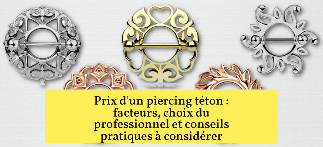 - Le prix d’un piercing au téton est situé entre 30 et 80 euros.