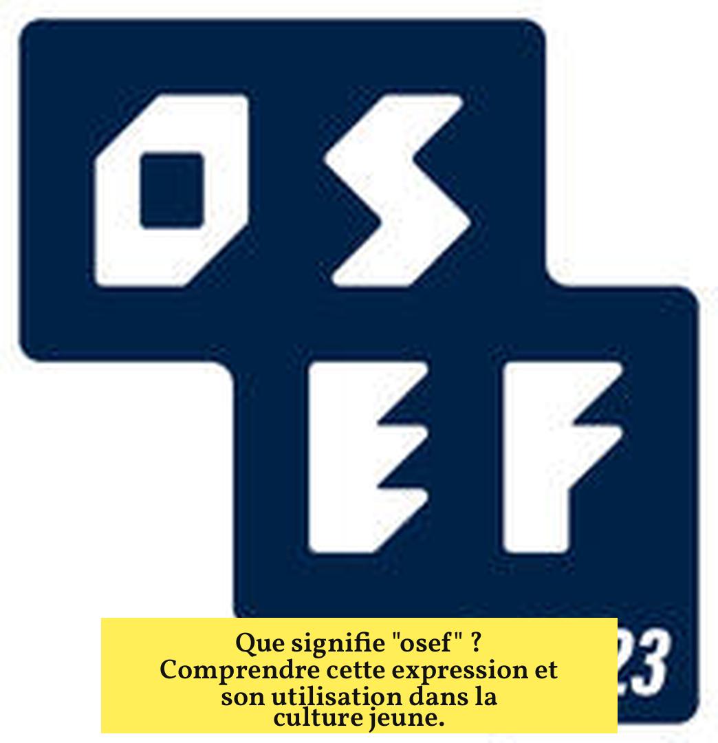 “Osef” est l’abréviation de “on s’en fout”. Ce terme exprime un désintérêt clair envers ce qui est dit ou proposé. Il est surtout utilisé de manière informelle entre jeunes.