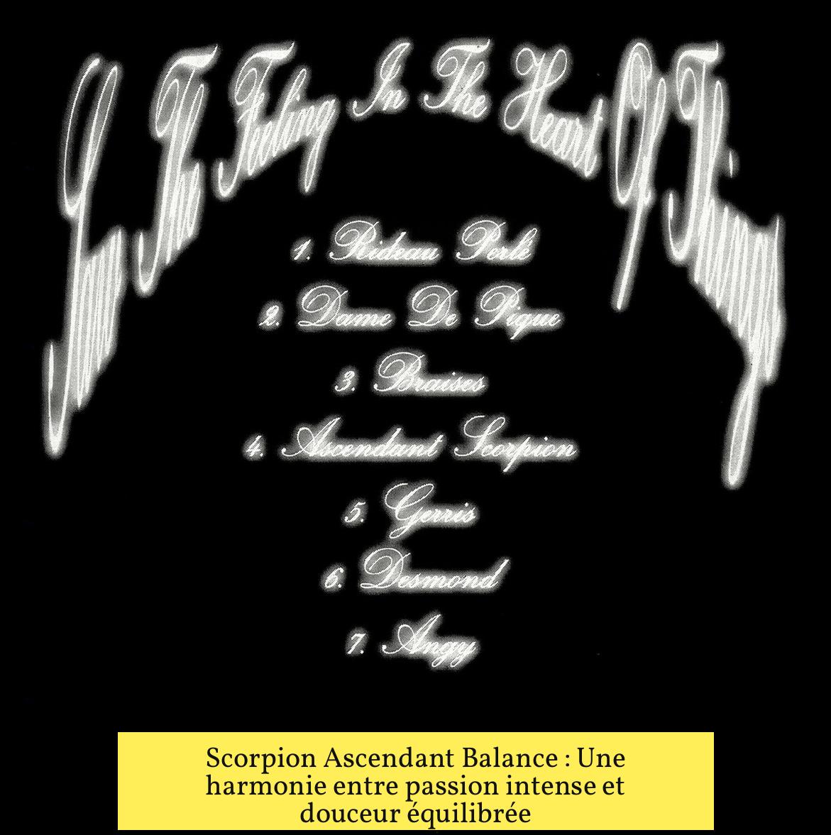 • Le Scorpion ascendant Balance mêle passion intense et diplomatie.