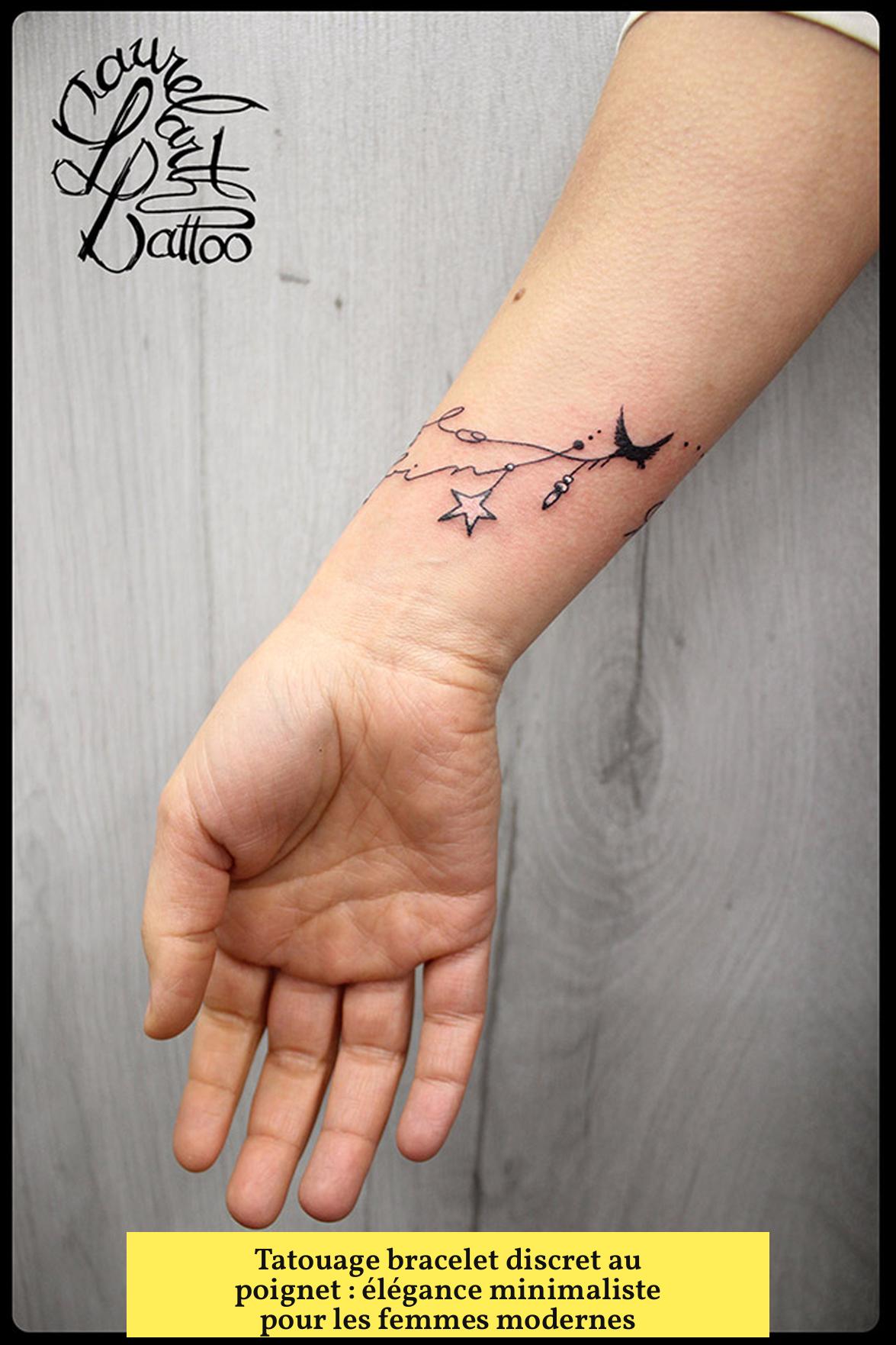 • Le tatouage bracelet poignet femme discret combine finesse, élégance et poésie.